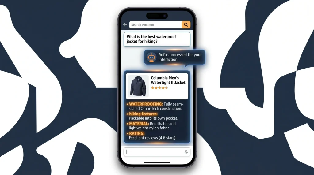 Rufus is Amazon’s built-in AI shopping assistant. It answers shopper questions directly inside the Amazon app and search results.